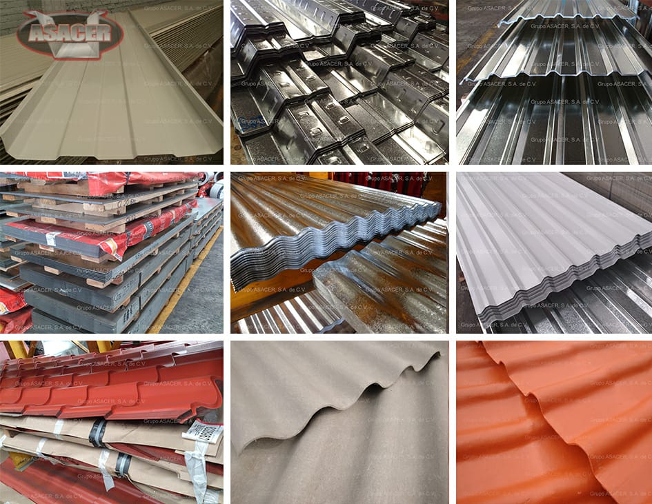 en rollo o cinta, hoja lisa y acanalada en los perfiles R101, R72, o Rectangular, Galvateja y Zincateja.